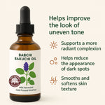 Bakuchi (Babchi) aliejus yra žinomas dėl savo gebėjimo sumažinti smulkių raukšlelių ir veido raukšlių atsiradimą, skatindamas kolageno gamybą. Jis padeda pagerinti netolygų odos atspalvį, mažina pigmentaciją, skatina odos elastingumą ir stangrumą.